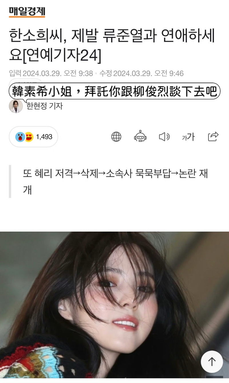 就是說,韓素希這次真的被砲轟得~很~慘~啊!是達,韓素希在29號清晨發長文,再次回應有關和柳俊烈的戀情👇