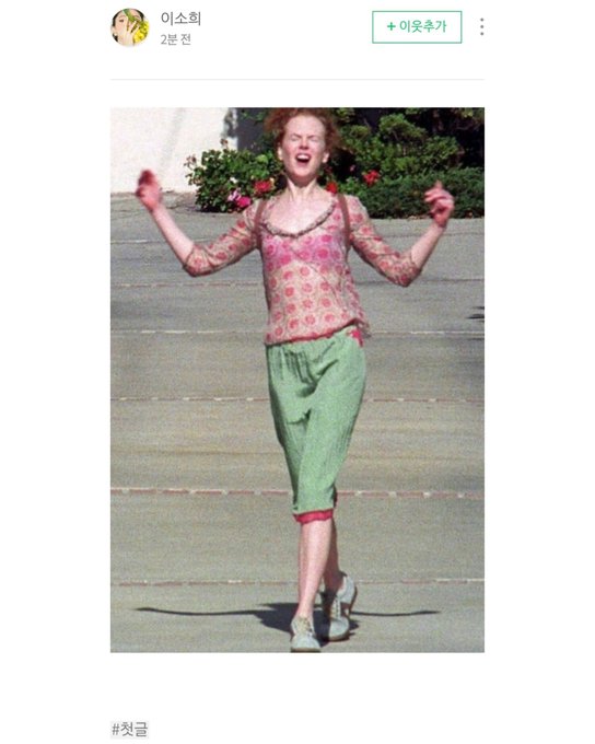 沒想到在30號下午,韓素希突然更新了博客,放出了一張「世界名畫」,就是當年妮可基嫚和Tom Cruise離婚後,走出律所時的照片👇