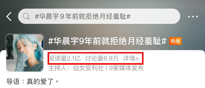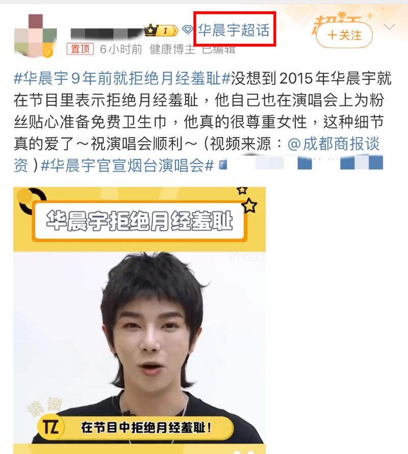 但沒想到上熱搜的,卻是「#華晨宇9年前就拒絕月經羞恥#」??怎麼一回事呢?原來是一個華晨宇9年前的訪談被重新翻出,當中提到早在2015年,華晨宇就在節目裏表示拒絕月經羞恥,他自己也在演唱會上為粉絲貼心准備免費衛生巾,他真的很尊重女性!