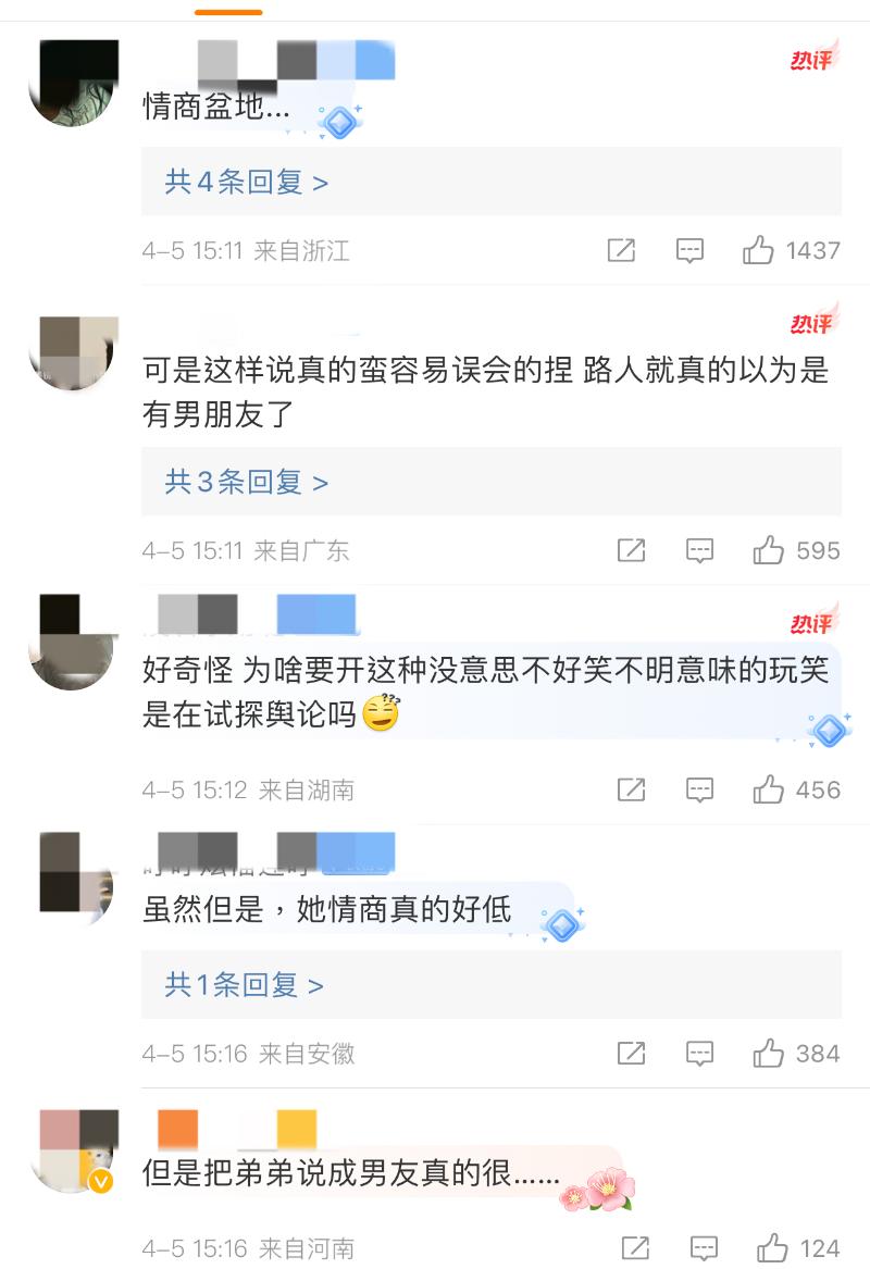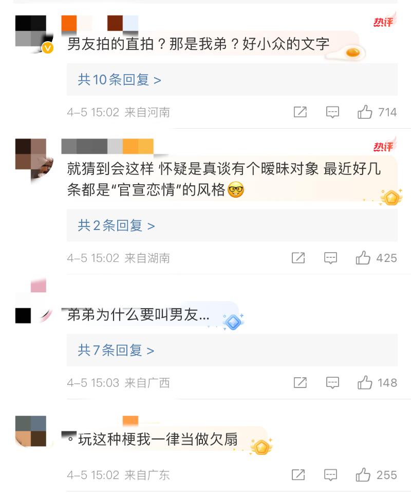 由於在短短幾天就兩次cue了戀情梗,結果就有粉絲留言,希望她不要談戀愛,專注事業!沒想到卻得到吳宣儀回懟:「那是我弟诶!不明白什麽心理,我沒有男友,少管我!」