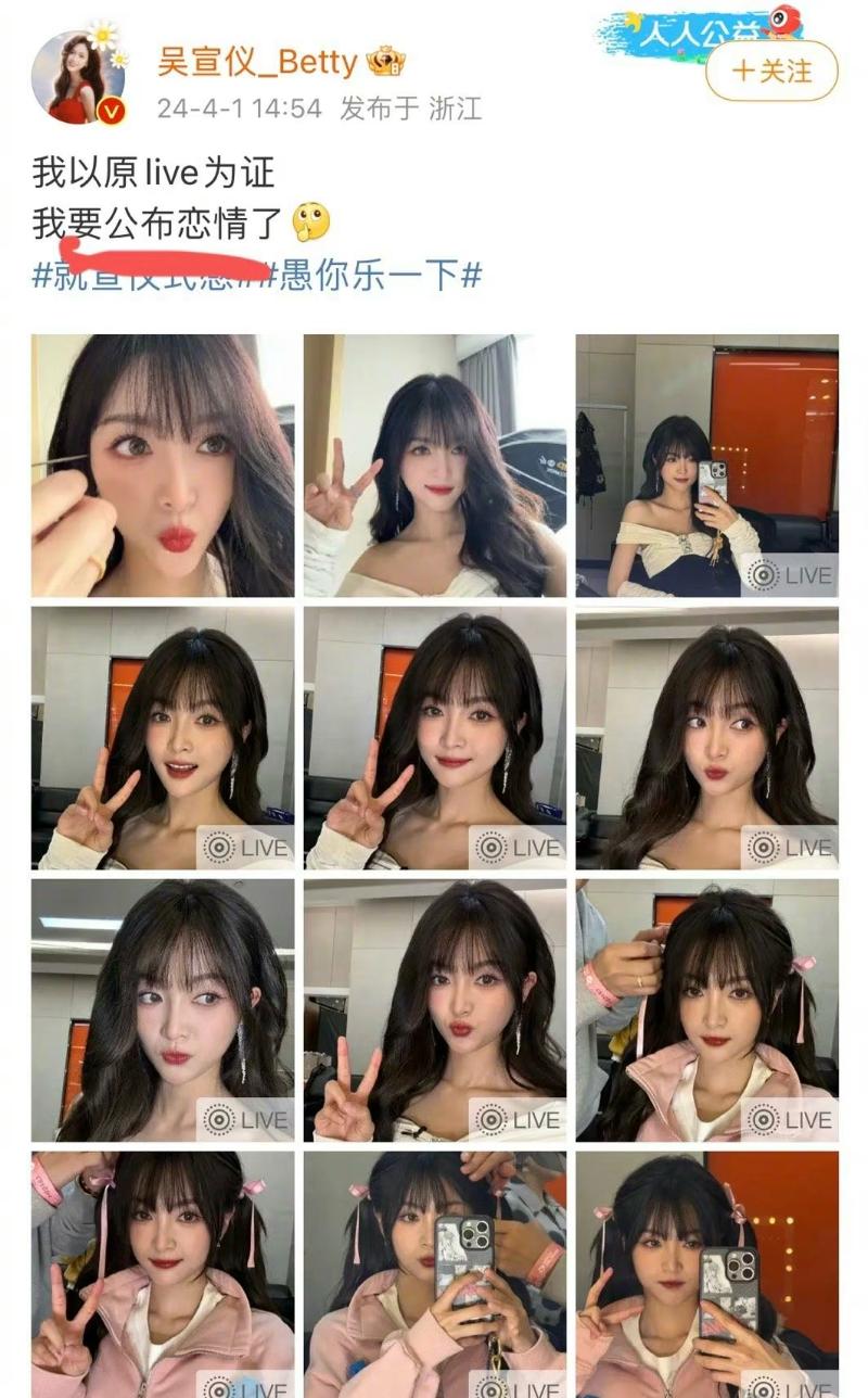 就是說,吳宣儀這次是玩過火了嗎?是達,都知道吳宣儀喜歡和粉絲交流,平時也愛開玩笑,之前愚人節就曾玩梗,表示要官宣戀情👇