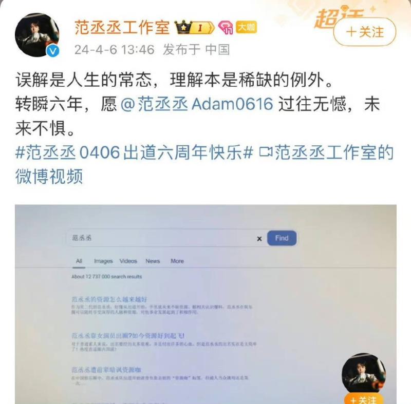 原本這件事已經平息,但沒想到在6號這天,范丞丞工作室慶祝出道6週年,公佈的一段視頻,直接將爭議再次推向熱議!