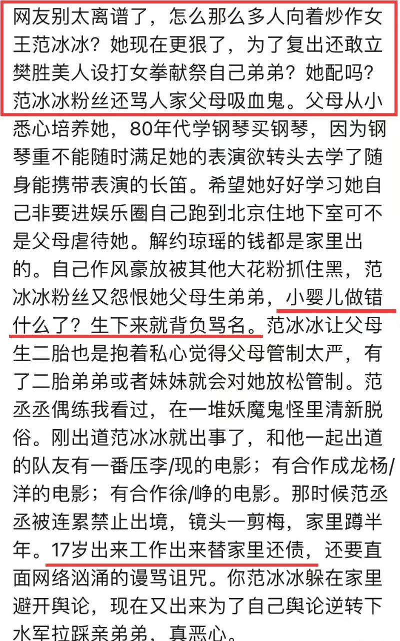 就是這麼一番言論,引起范丞丞粉絲強烈不滿,開懟范冰冰亂說,范丞丞從小就因為生為范冰冰弟弟而造謠是「私生子」,17歲就因為范冰冰逃稅問題,被迫放棄學業出來還債等👇