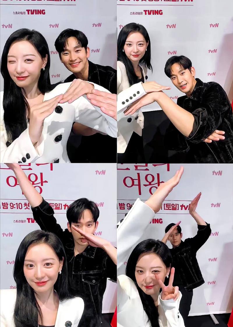 就是說,這兩對都是顏值在線的CP啊!是噠,金秀賢、金智媛主演的《淚之女王》最近人氣強滾滾,兩人也頻頻跑活動宣傳!
