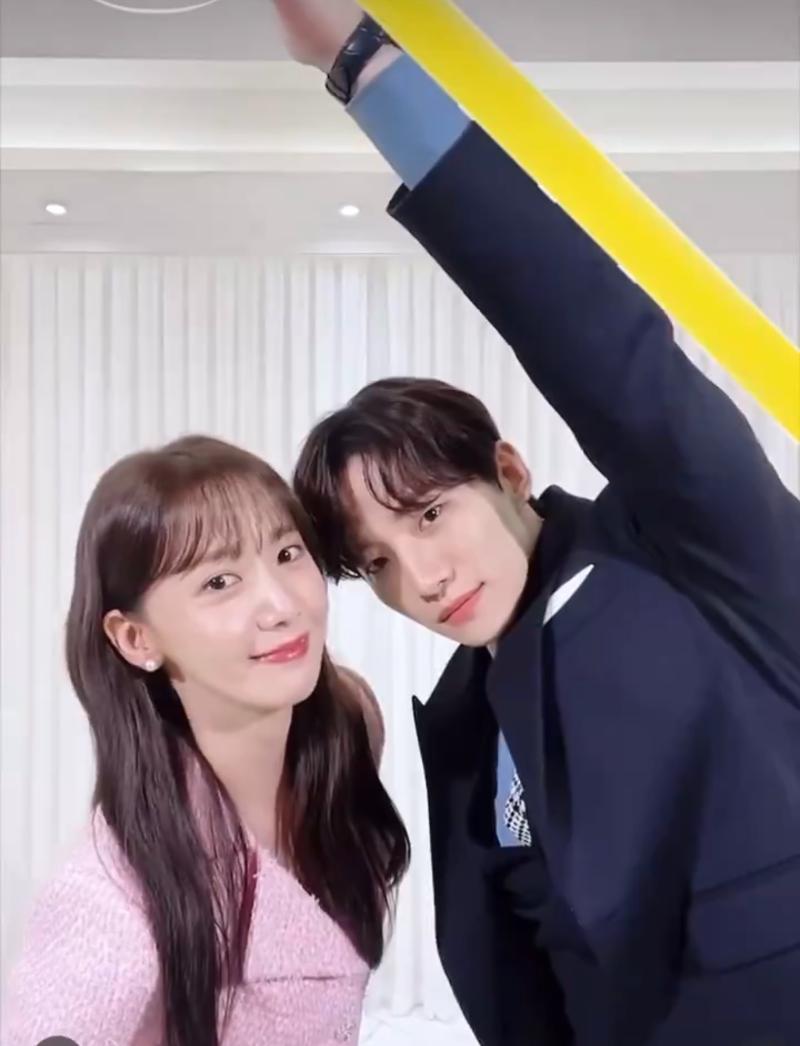 來看看,同樣都是二代團愛豆出身的允兒和俊昊,在比心過程十分熟練,默契十足!
