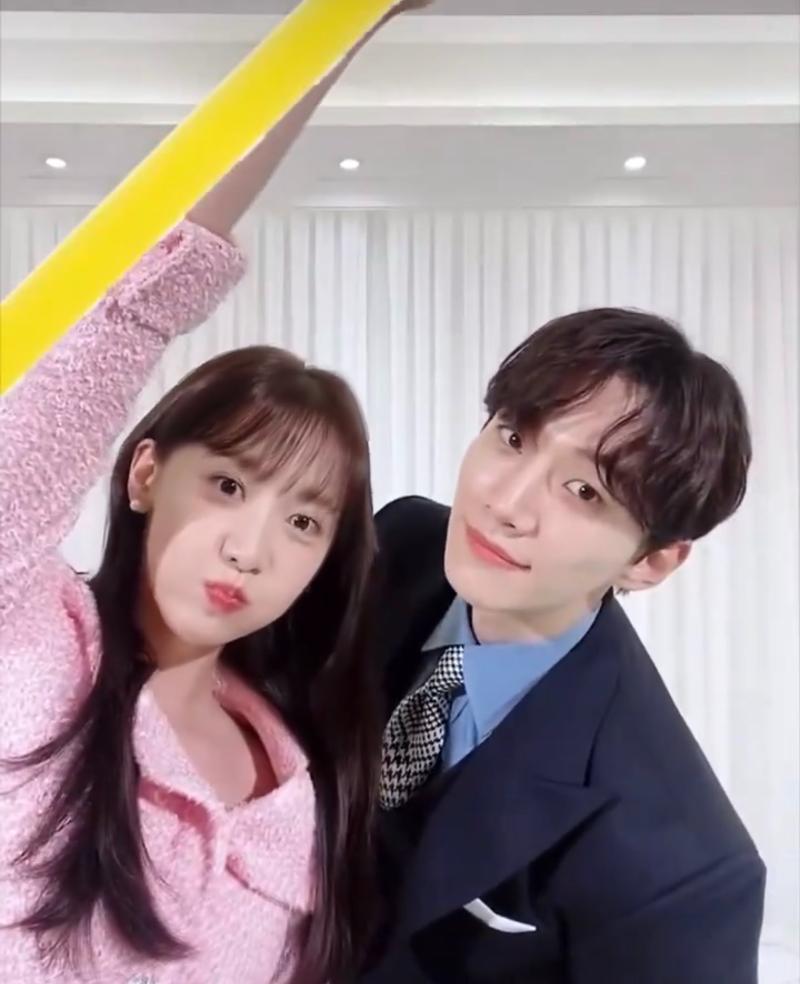 來看看,同樣都是二代團愛豆出身的允兒和俊昊,在比心過程十分熟練,默契十足!