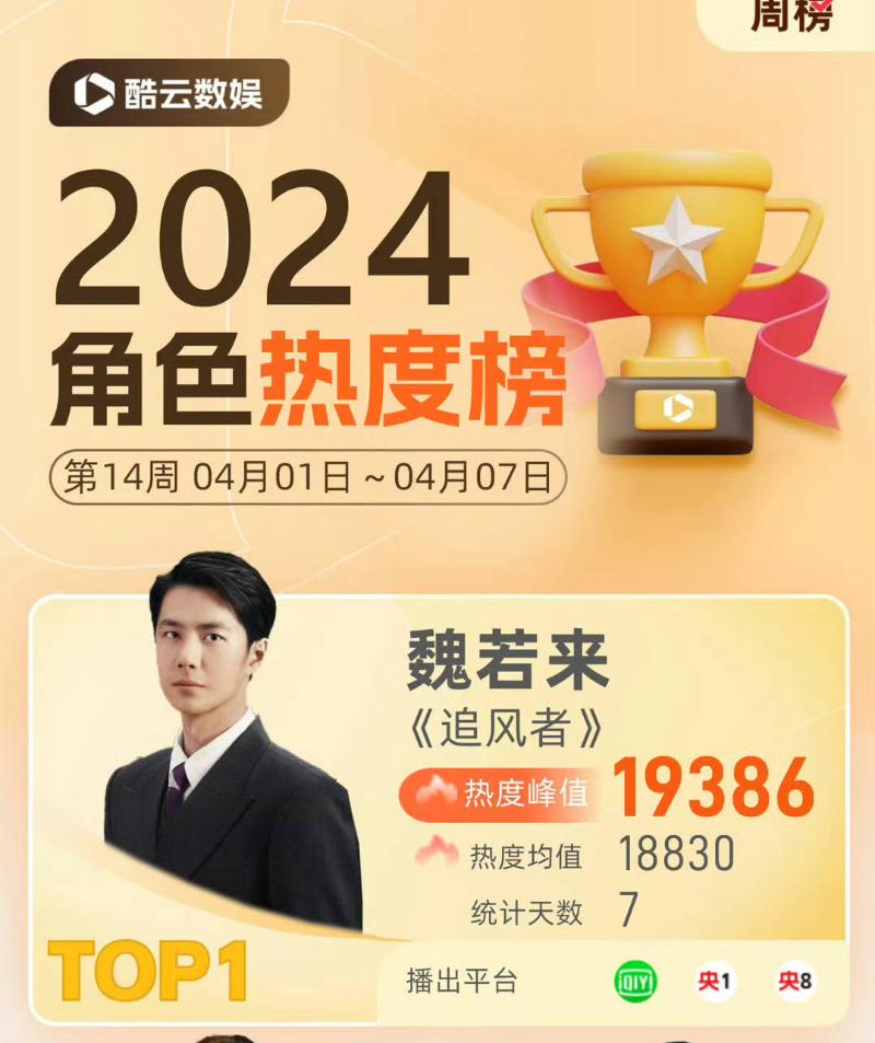 而王一博本人的角色熱度值,更是全平台登頂👇
