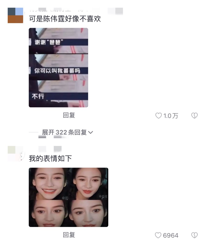 隨著節目播出,網友清一色吐槽炮轟,明明陳偉霆都拒絕了幾次,還硬要叫爸爸,居然還委屈起來了👇
