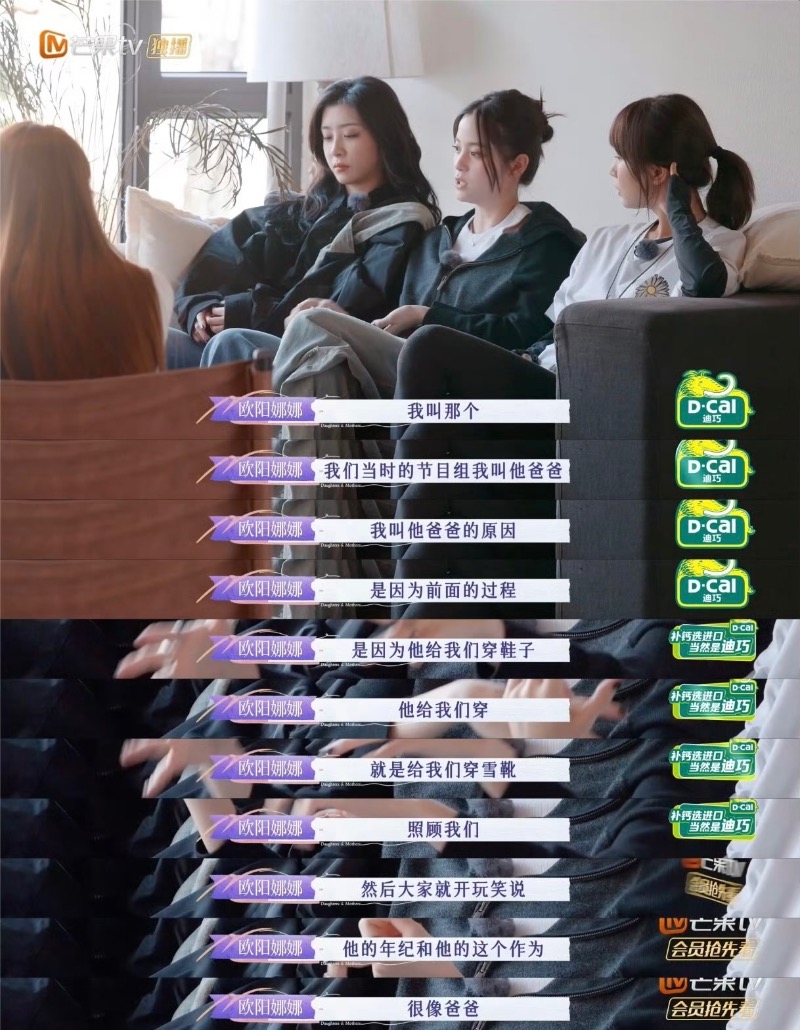 歐陽娜娜解釋表示,自己是因為覺得陳偉霆在節目中很照顧大家,覺得以他的年齡和作為,很適合叫爸爸。