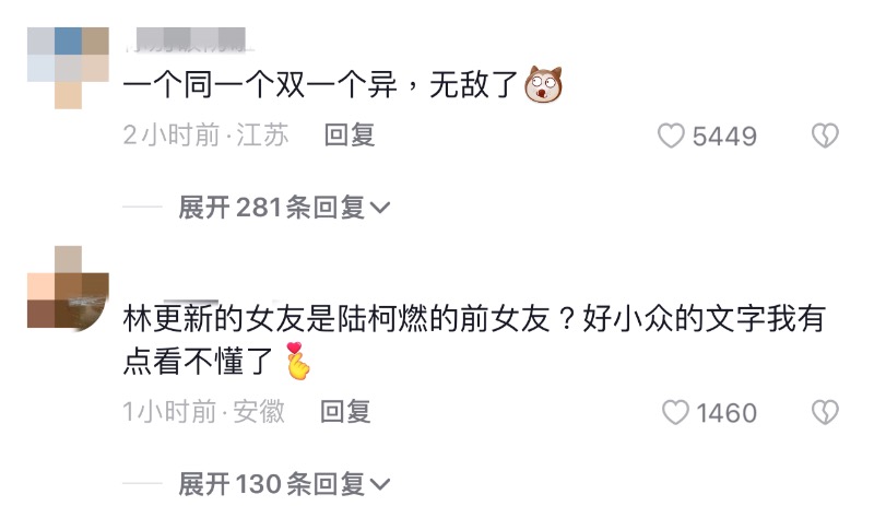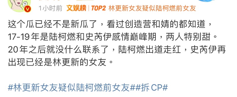 沒想到這戀情瓜居然還瓜中有瓜?是達,隨著林更新女友史芮伊曝光,居然有網友扒出她疑似是陸柯燃的前女友?