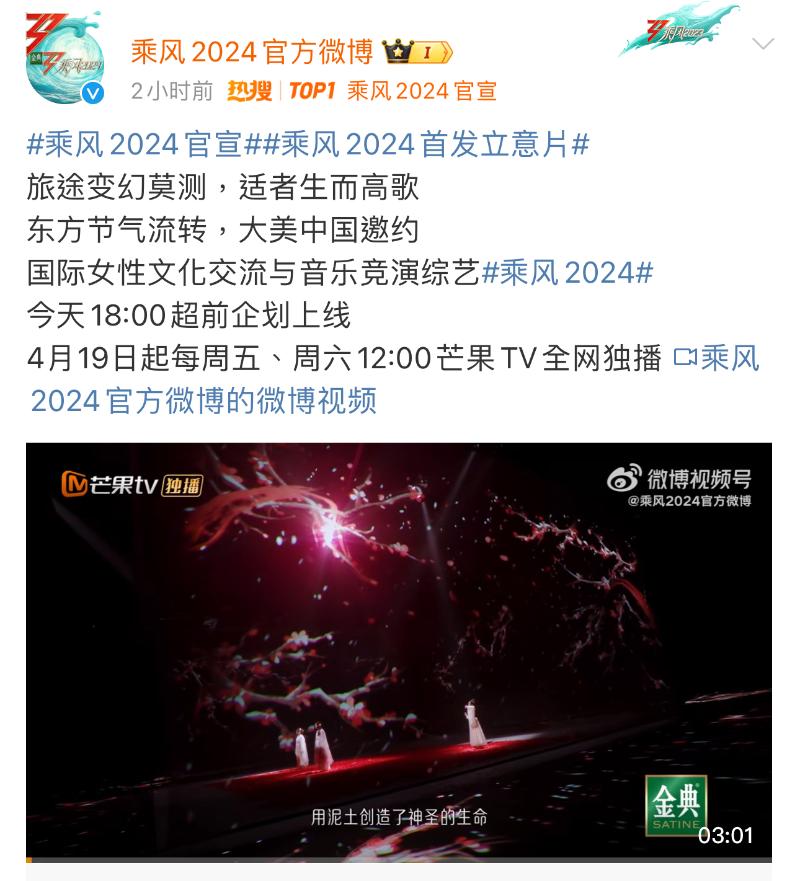 最後,這一季《乘風2024》已經官宣將在2024年4月19日起,每周五、周六12點芒果TV全網獨播!!!追起來了喂~