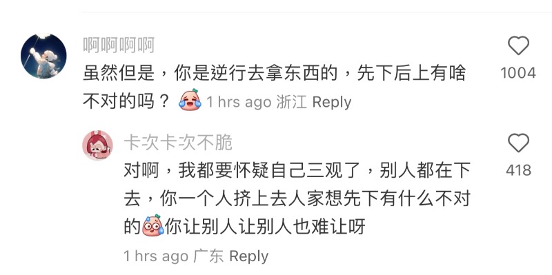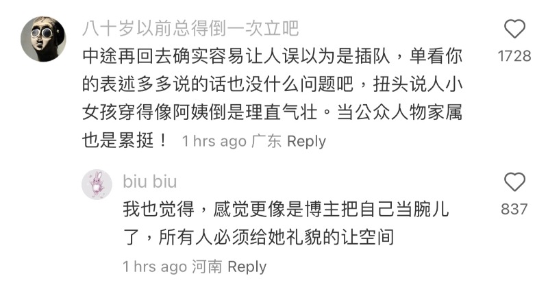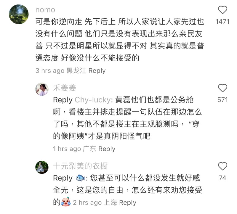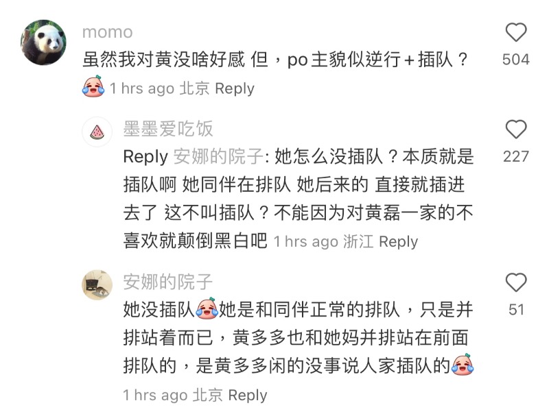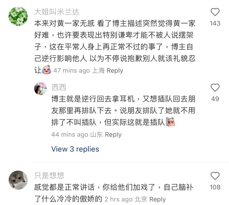 雖然但是,這則貼文公開之後,評論區幾乎一面倒認為原Po自己不對:插隊+逆行,黃磊一家只是沒那麼友善,但也沒做錯!