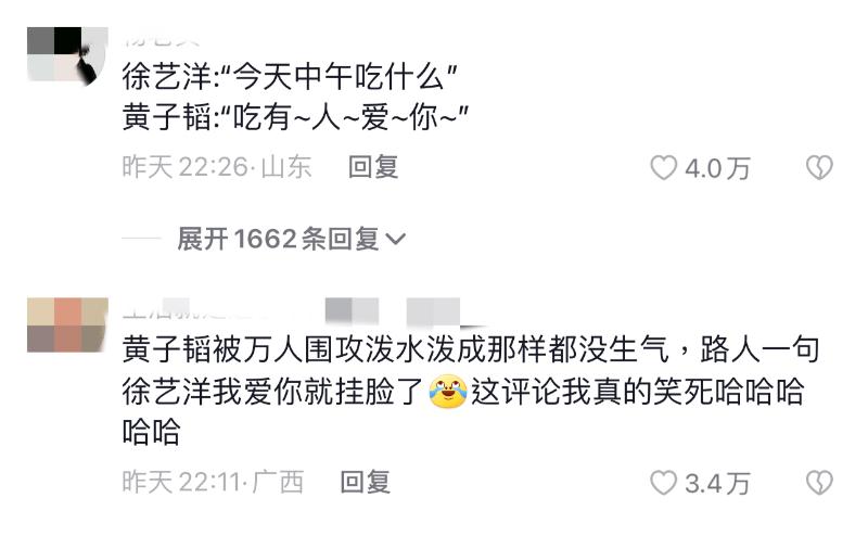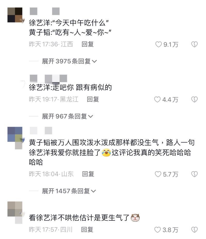 還讓徐藝洋給點回應對方,聽見這句話的粉絲紛紛調侃,表示黃子韜吃醋了!!!