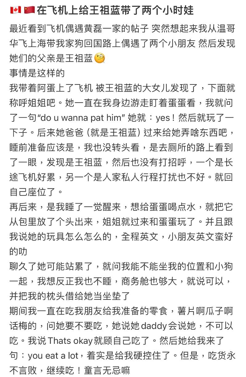 就是說,明明是很溫馨的分享,怎麼居然有這種解讀呢?是噠,有網友發文分享了自己在加拿大飛中國的機上,給王祖藍帶了兩個小時娃引起關注!