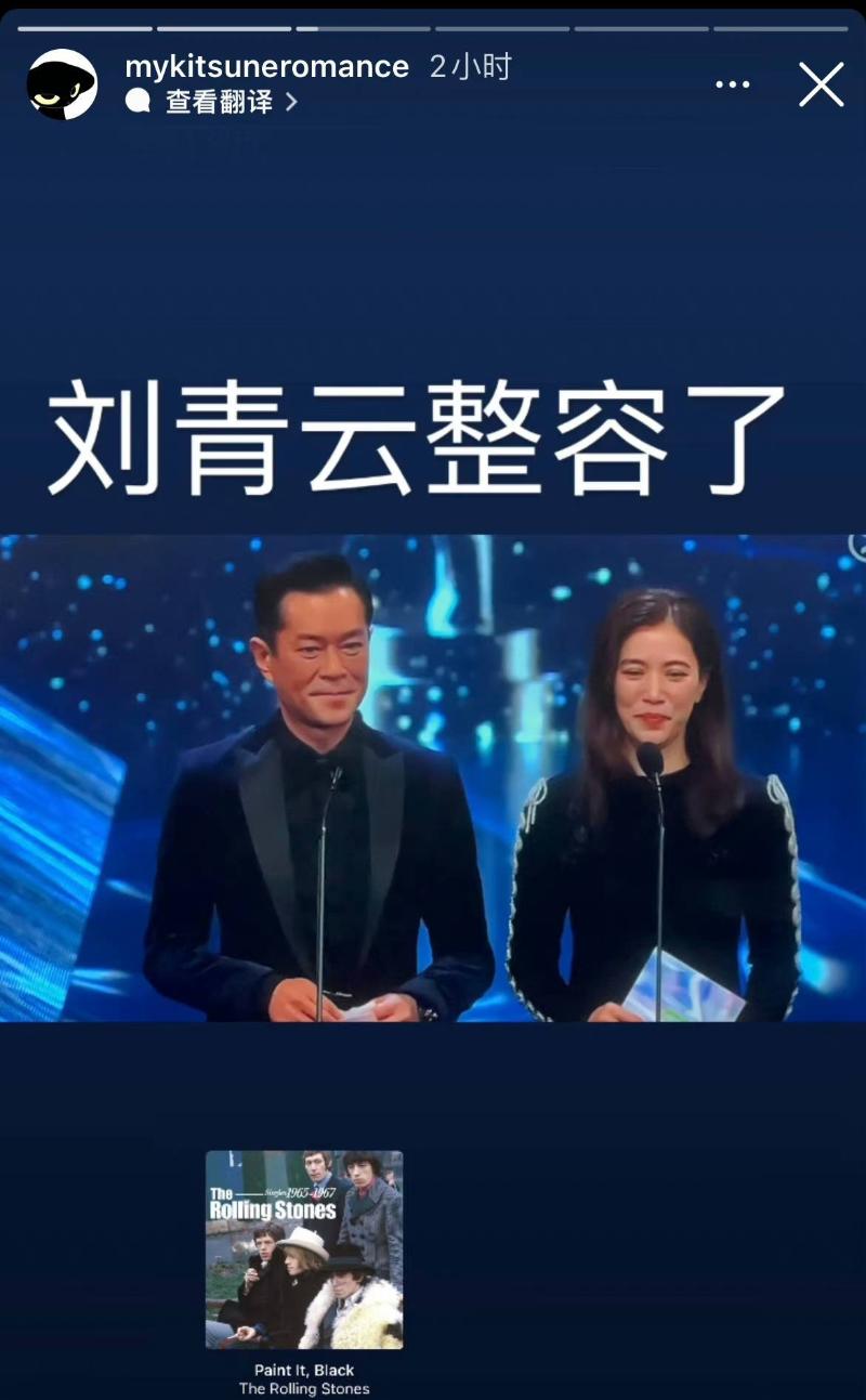 先來看看,費曼先是發了古天樂的截圖說「劉青雲整容了」(古天樂自己在頒獎時發言,說自己是劉青雲),看得出全程都看得很專注,有梗都要回應!