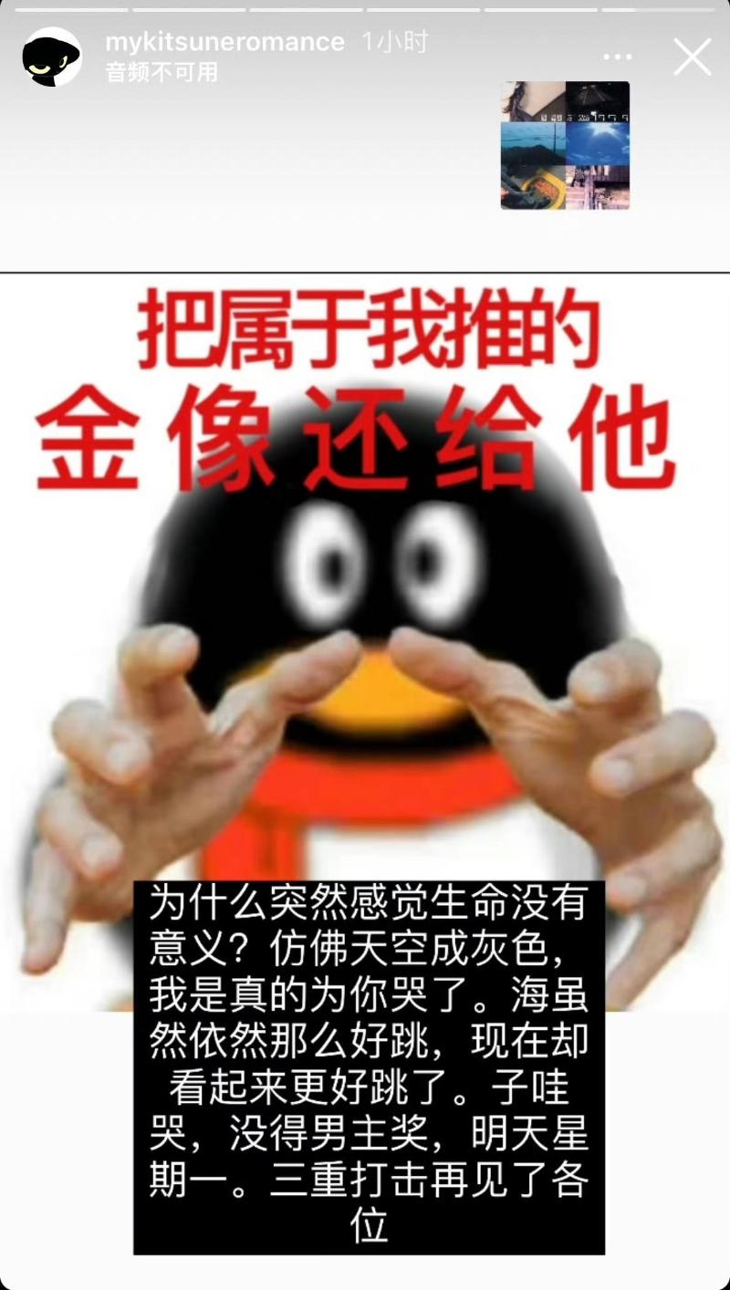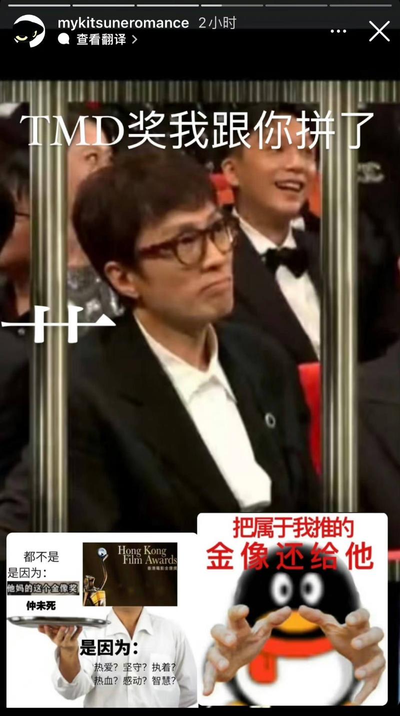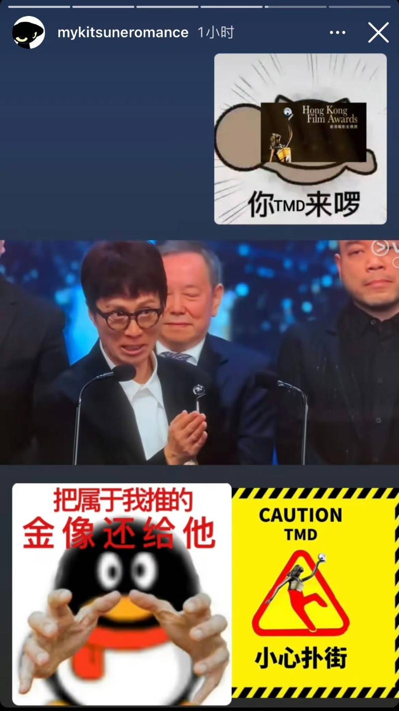 或許真的把老爸的話聽進去了,費曼確實消停了不少,但不在微博吐槽,反而跑到INS發限時動態去啦!是噠,隨著第42屆香港金像獎落幕,費曼第一時間就在INS限時動態瘋狂吐槽來了!
