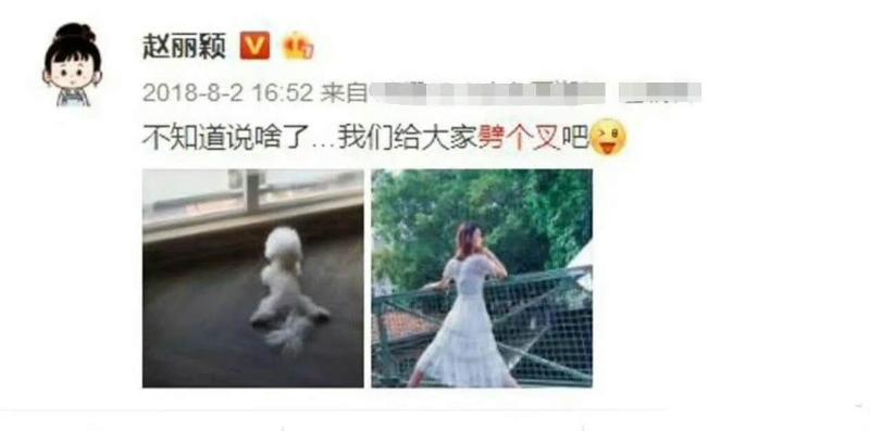 到底怎麼一回事呢?簡單科普的話,就是當年為了闢謠懷孕的傳聞,趙麗穎曾發文表示:「不知道說啥了,我們給大家劈個叉吧」