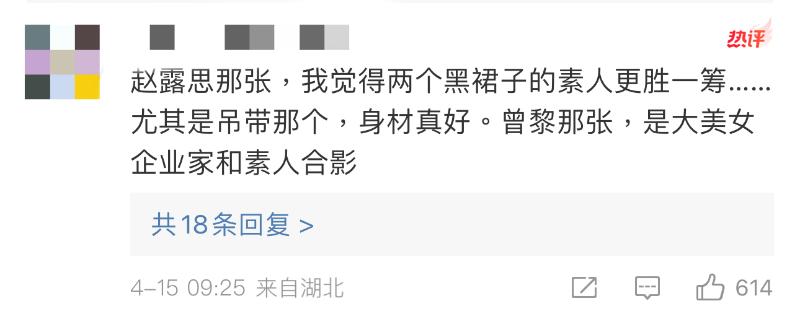 但有不少網友評價,對比曾黎和王安宇,趙露思在合照中看起來更像是素人👇