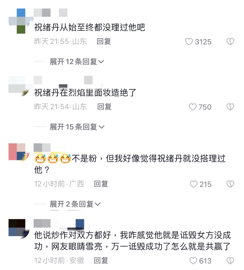 雖然但是,在評論區幾乎一面倒認為又是于正在自導自演,畢竟從一開始就是他單方面在開轟,而祝緒丹方根本沒給過任何回應👇