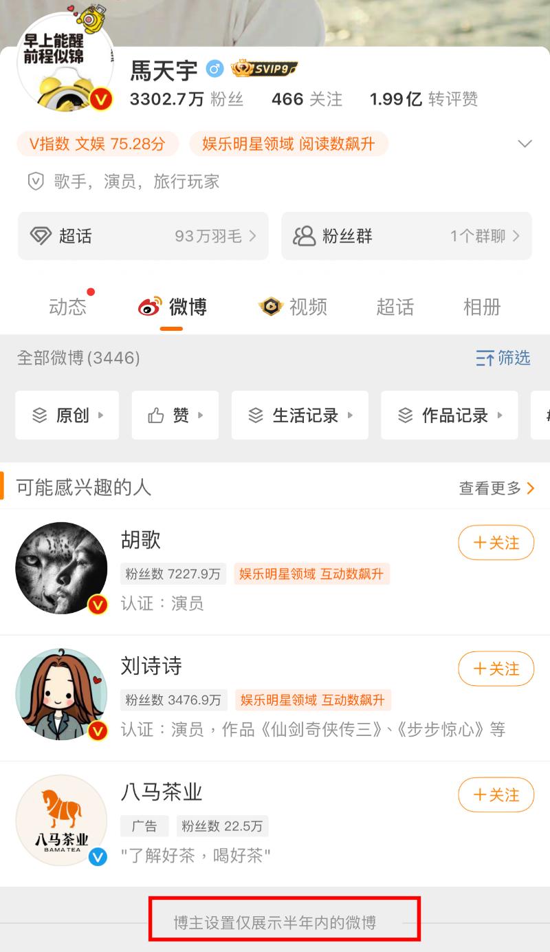 沒想到隨著熱議,網友發現馬天宇這次直接清空了所有微博,連半年可見都沒有了👇