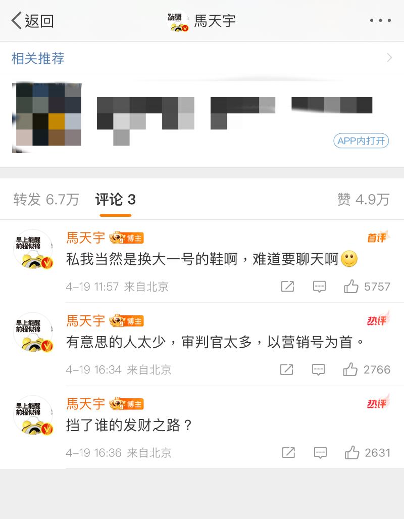 結果這則微博引起了爭議,某些網友認為馬天宇的語氣和話語不妥,感覺十分狂妄,一點也不尊重品牌方!