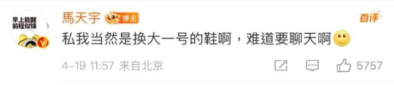 此外,馬天宇還在評論區補充:「私我當然是要換大一碼的鞋,難道要聊天啊!」