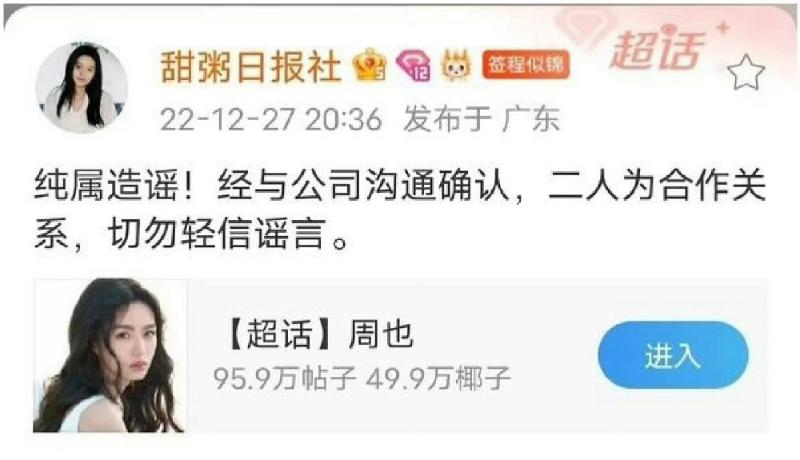 雖然但是,在23號下午,突然有網友公開了一張從未見過的王星越、周也合照,只見兩人穿著睡衣躺在床上,發帖人還反問王星越,當初不是闢謠沒有和周也戀愛嗎?這帖迅速被搬運到各大營銷號👇