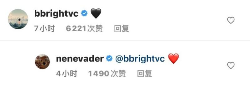 不但在活動上公開談論戀人,Bright也在Nene官宣的INS貼文下互動,留下了一顆心,Nene也用了同樣的❤回應,簡單來說…放閃!