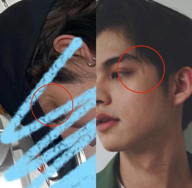 網友根據原Po曬出的照片,發現對方確實就是Bright,耳朵旁的疤痕對上了👇