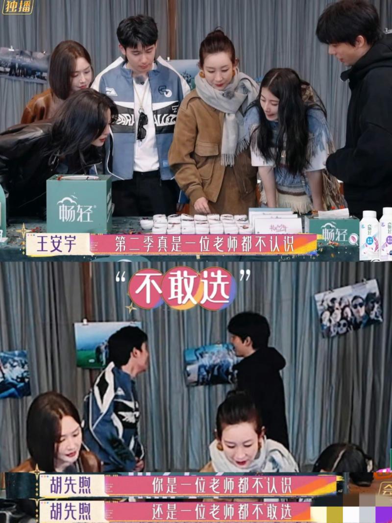 這次節目中,安排了姐姐們從第二季的花少團中,抽出一起去旅行的成員們!一聽見是第二季,全體露出了很微妙的表情!王安宇表示:「第二季真是一位老師都不認識!」被有話真的說的胡先煦吐槽:「你是一位老師都不認識,還是一位老師都不敢選?」