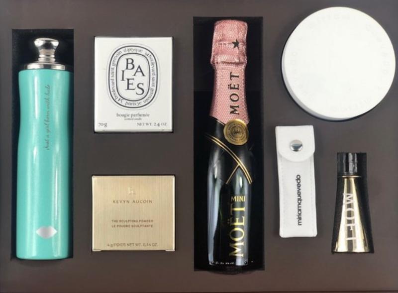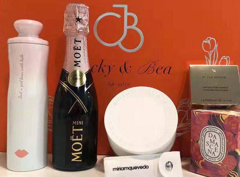 來看看,向佐公開的伴手禮照片,裡面是6件組的禮物,包括了法國頂級香薰品牌Diptyque的明星産品Baies漿果香薰蠟燭、具有270多年歷史的法國名酒酩悅香槟Moet & Chandon,口紅杯、魚子醬面霜、修容霜👇