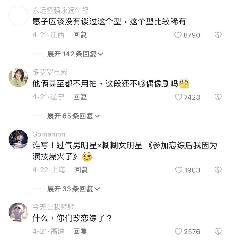 雖然但是,不少網友紛紛在節目外開嗑真人CP,甚至形容這一對是溫柔氣質體貼大叔x明媚活潑純真甜妹,甚至還有“梁情相惠”的CP超話(⊙o⊙)…