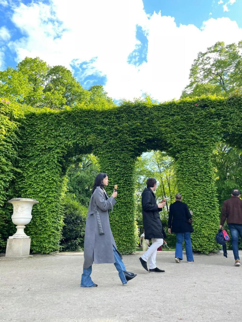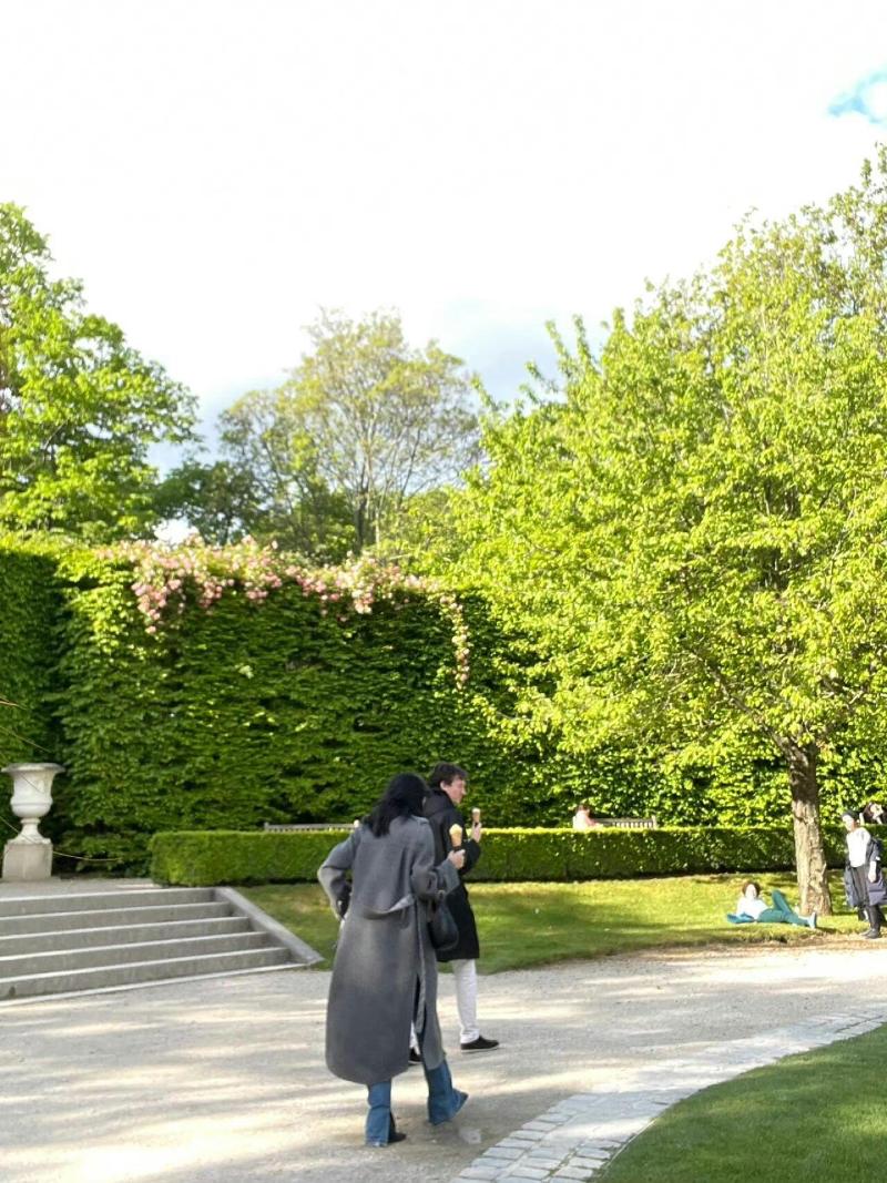 「下午在羅丹美術館花園曬太陽,看到附近一個女生拍冰淇淋。身為饞鬼多看了一眼黃澄澄的冰淇淋,正巧女生轉頭就和我對視了。我心想這個美女姐姐長得好像lisa,再看旁邊這個男的也這麼眼熟,這才後知後覺是本人。明星在歐洲好chill,連墨鏡都不戴,不過也沒人來打擾。倆人就像小情侶一樣曬太陽吃冰淇淋逛花園,真好磕。」