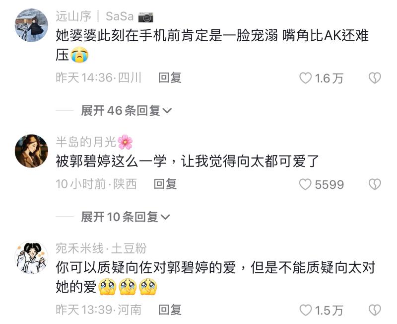 這一段播出之後,不少人都覺得在線羨慕,郭碧婷和向太的關係真的很好啊👇