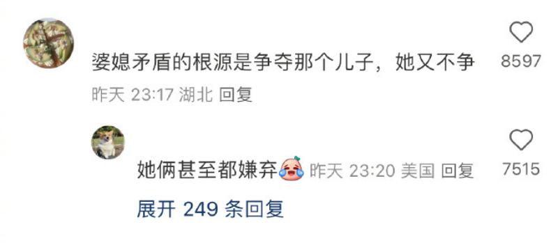 最好笑的是,有網友神分析為什麼婆媳之間關係這麼好,答案是…「婆媳矛盾的根源是爭奪那個兒子,她又不爭」哈哈哈哈哈哈哈哈,這麼說是認真的嗎???
