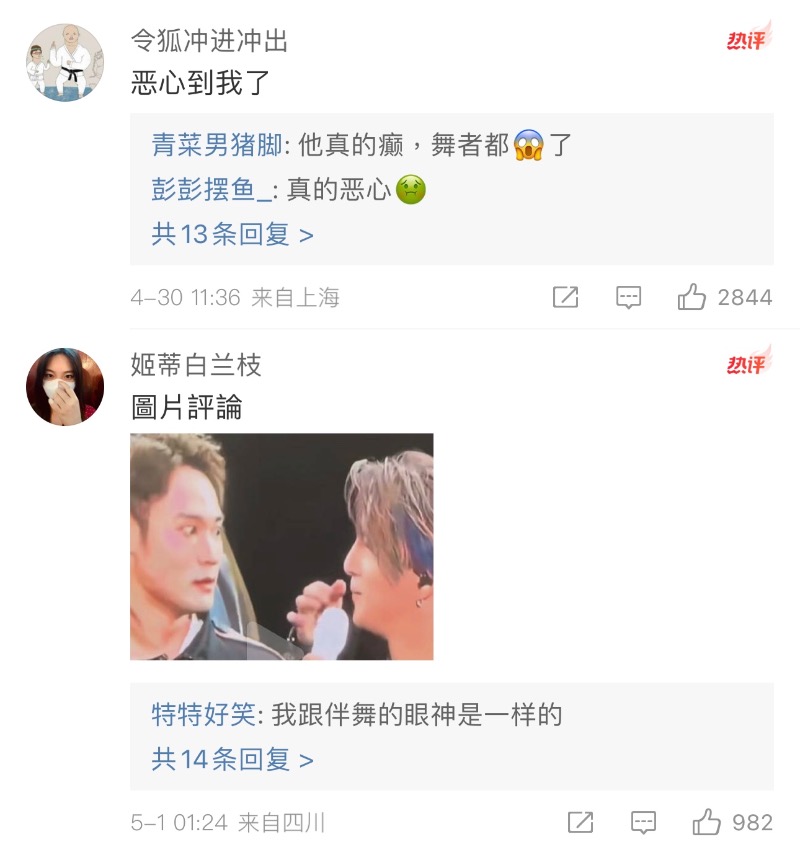但,沒想到近日他在中國鎮江的演唱會玩梗片段曝光之後,被網友批評太噁心,因而引起爭議!