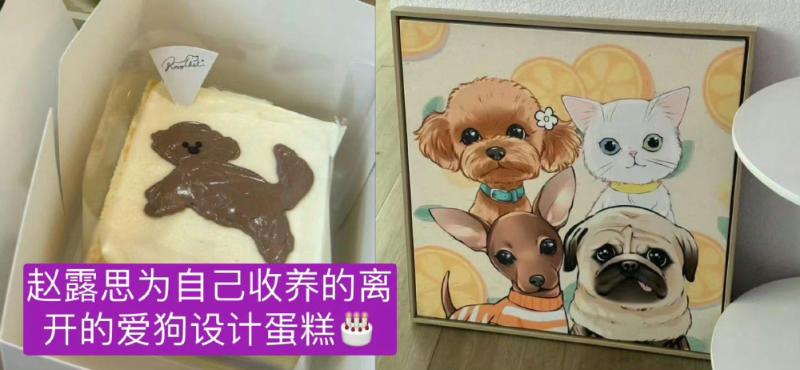 這家甜品店趙露思花了不少心思,從設計到甜品都給了意見,也不定時推出和自己相關的系列,像是以自己寵物為主題的蛋糕👇