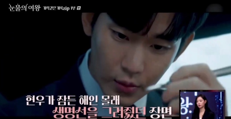 那,每一集都有的彩蛋,兩人最愛的是哪一個呢?金智媛最愛的是asa第七集的彩蛋,也就是我們白賢祐幫睡著的海仁,畫長生命線這一幕👇