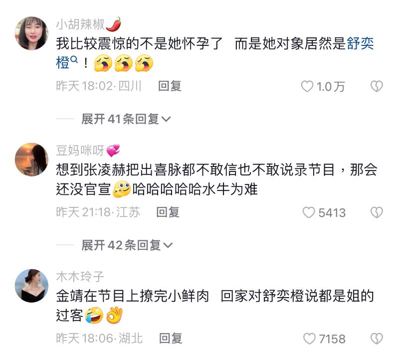 還有另一群吃瓜吃得慢的網友,還在驚訝於她的另一半是舒奕橙👇
