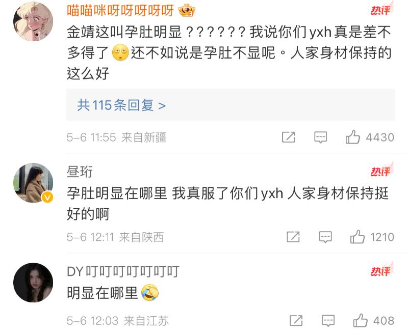 結果熱門評論區都在吐槽媒體,這樣的身材…哪來的孕肚明顯???