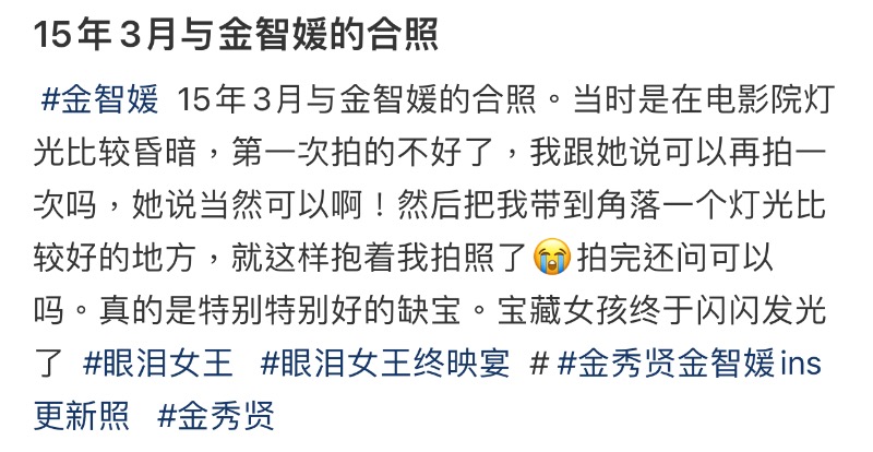 有中國網友就公開了自己9年前和金智媛的合照,表示寶藏女孩終於閃閃發光了👇