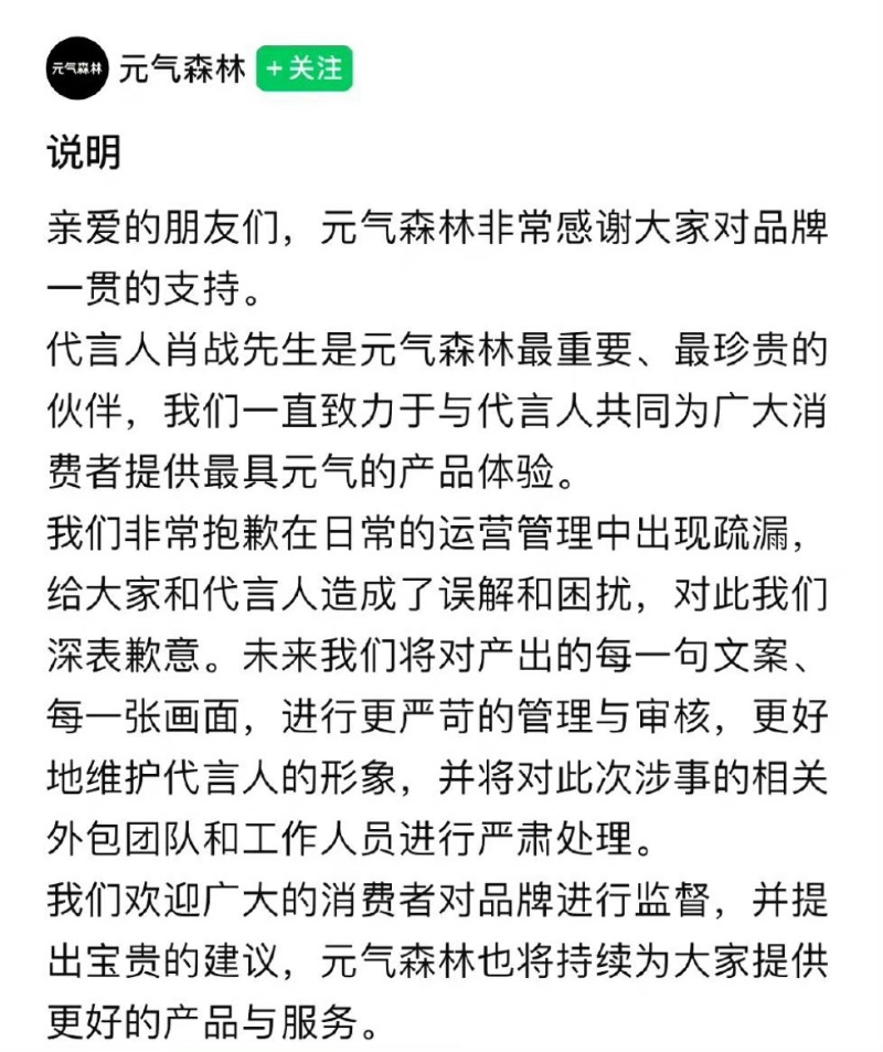品牌方發文道歉,表示今後會謹慎處理宣傳物料,以及將對外包團隊進行嚴格的處理👇