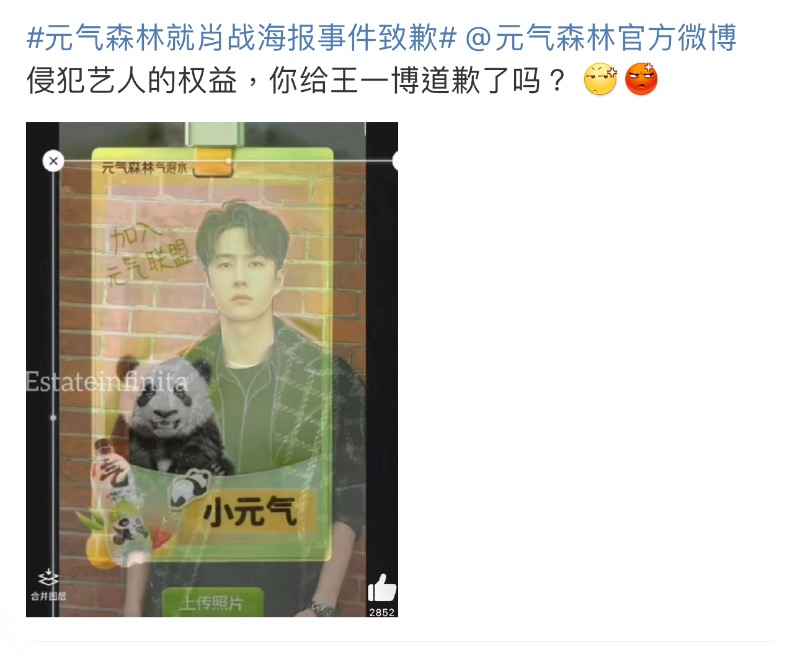 而王一博粉絲也紛紛發文,要求針對肖像侵權道歉👇