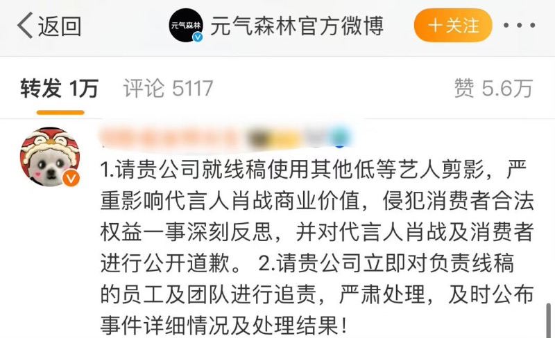 肖戰粉絲紛紛到官博下維權,要求品牌方做出回應👇