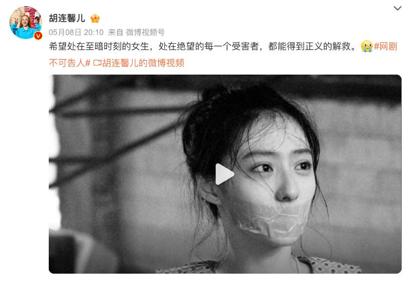 而胡連馨在8號晚上,也曾發文宣傳新劇,配文:「希望處在至暗時刻的女生,處在絕望的每一個受害者,都能得到正義的解救。」被網友懷疑疑似回應👇