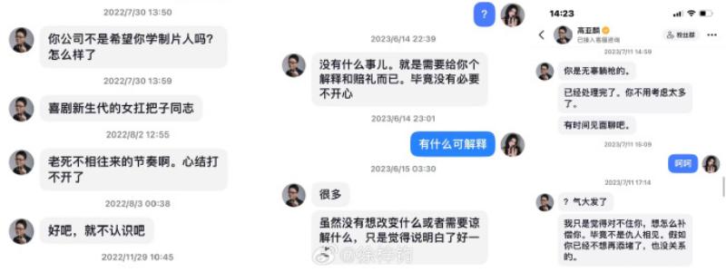 2、高亞麟曾用轉賬向她示好,並隱瞞婚姻狀況。後知道高亞麟已婚,且自己是他衆多追求對象中的一個後,便斷了聯系。高亞麟試圖通過工作人員加回她微信,但她並未理會。