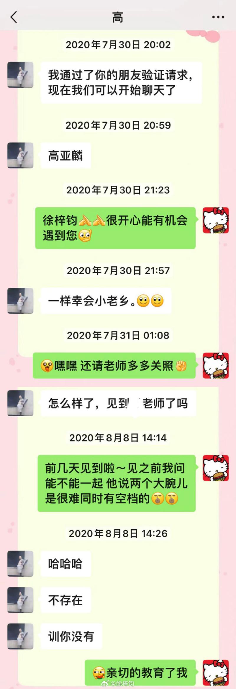 不過在魏嘉和高亞麟對質的簡訊中,高亞麟將徐梓鈞稱作是“雞”👇