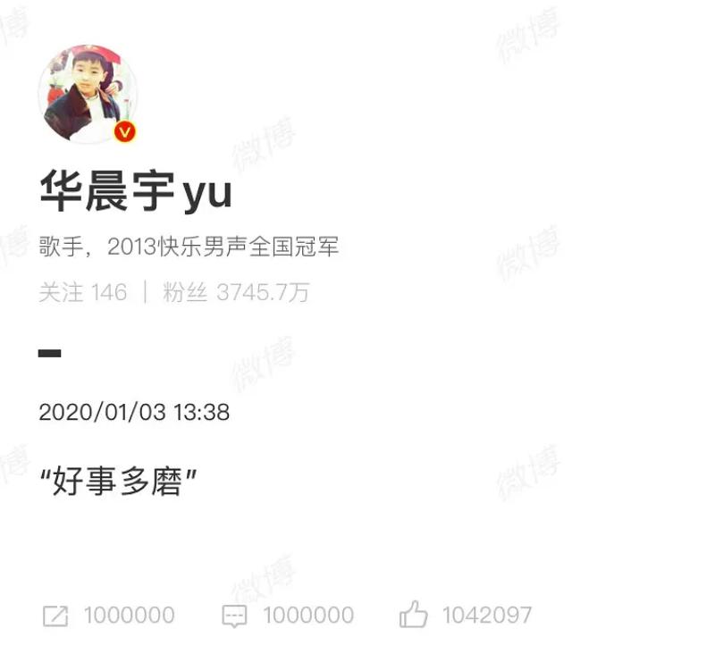然後下午一點半,華晨宇突然一條微博,打了引號的“好事多磨”,這是他之前演唱會遇到不可抗力臨時改地址時說的話。但是到底去還是不去也沒說清楚。