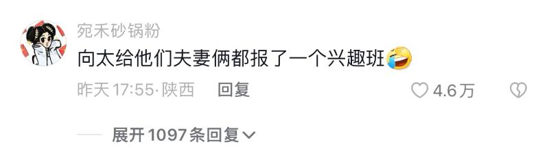 會看,當然看評論區啊!來看看,熱評第一表示…向太幫夫婦倆報了個興趣班!