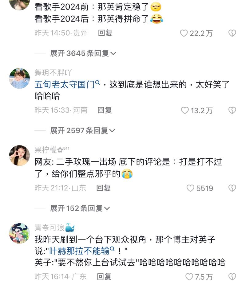 新聞:《歌手2024》「中國的希望」那英只得第三!全網線上吶喊助威「英子歷險記」!直接笑死在評論區!